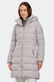 The Aurora Parka is crafted in Ventera–a water-repellent, wind-resistant fabric with a soft-touch finish. Featuring a removable hood and internal drawcord to cinch the waist.