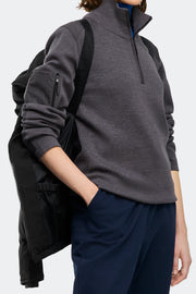 Two-way zipper unzips from the bottom for added range of motion or venting