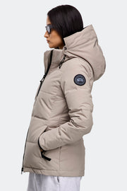 A minimalist aesthetic with customizable features. Remove the hood and cinch the waist for different styling options.