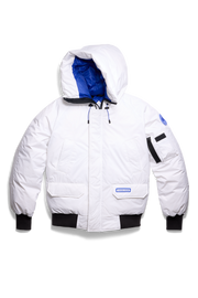 • One of our most beloved styles, the Chilliwack Bomber, is reimagined in our ISO PEAK 2L� fabric. This durable, two-layer shell with built-in stretch was designed for performance in high-altitude conditions. The contrast lining draws inspiration from the high visibility required by bush pilots when operating on Arctic runways.