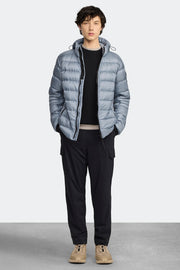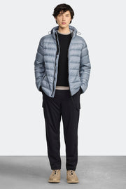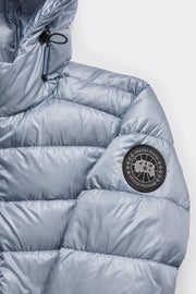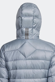 - Adjustable down-filled hood with drawcord