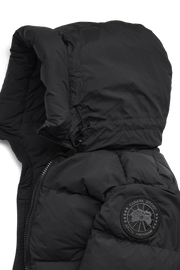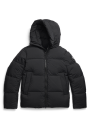 - Down-filled adjustable hood with drawcord