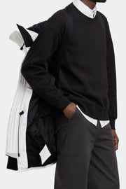 - Sleek interior hanging lining with backpack straps allow jacket to be carried hands-free over the shoulders