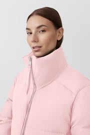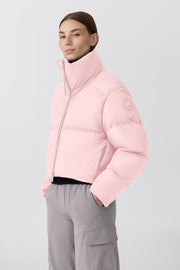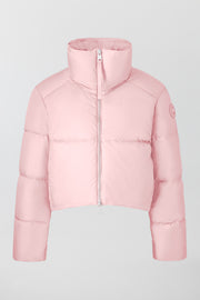 The Garnet Cropped Puffer is crafted in Pima, an ultra-luxe water-repellent fabric with a matte, dry finish. It features a subtle elliptical hem, fixed down-filled collar and interior drawcord at the hem for a customizable silhouette. The Garnet has a modern, minimalistic silhouette making it the perfect addition to any outfit.