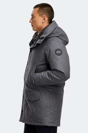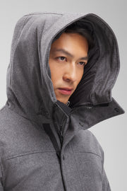 - Two-way adjustable down-filled hood adds warmth and element protection