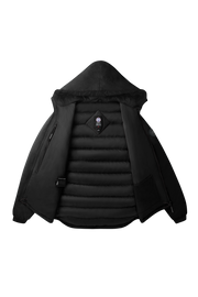- Three exterior pockets: one zippered chest pocket, two zippered hand pockets
