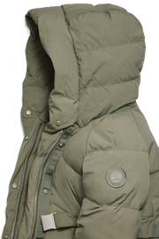 • Down-filled adjustable shawl wrap hood adds warmth and element protection