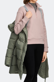 The Montgomery Coat is crafted from Lumina, a super soft, ultra-lightweight fabric with a subtle sheen finish. It features a cinchable hood, distinct A-line silhouette and drawcord at the waist for a modern, personalized fit.