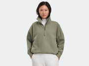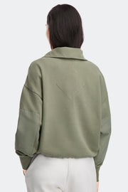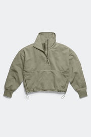 The Quincy Pullover is crafted from Brushed Cotton Terry for a double-brushed finish that delivers all-over softness. It features hits of Woven Cotton at the elbows, hem, and collar for added durability.