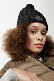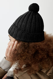 Rib Pom Beanie Cashmere - Black