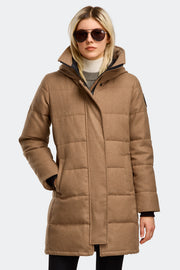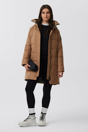 Our Shelburne Parka is reimagined in buttery-soft AlluraLuxe Wool for a super soft hand feel, durability and luxe warmth. Featuring an adjustable down-filled snorkel hood for added protection, the thigh-length Shelburne delivers elevated warmth.
