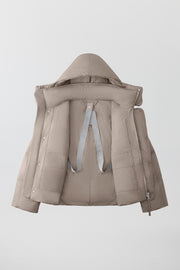 • Snap closure placket over two-way centre-front zipper