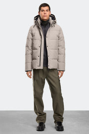 - Adjustable down-filled hood adds warmth and element protection