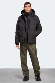 - Adjustable down-filled hood adds warmth and element protection