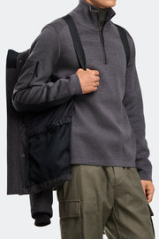 - Sleek interior hanging lining with backpack straps allow jacket to be carried hands-free ov er the shoulders