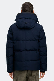 - Adjustable down-filled hood adds warmth and element protection