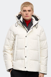 - Adjustable down-filled hood adds warmth and element protection